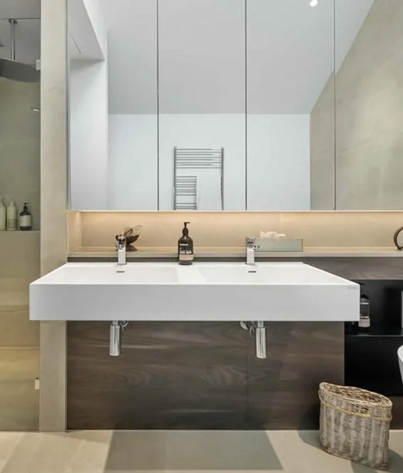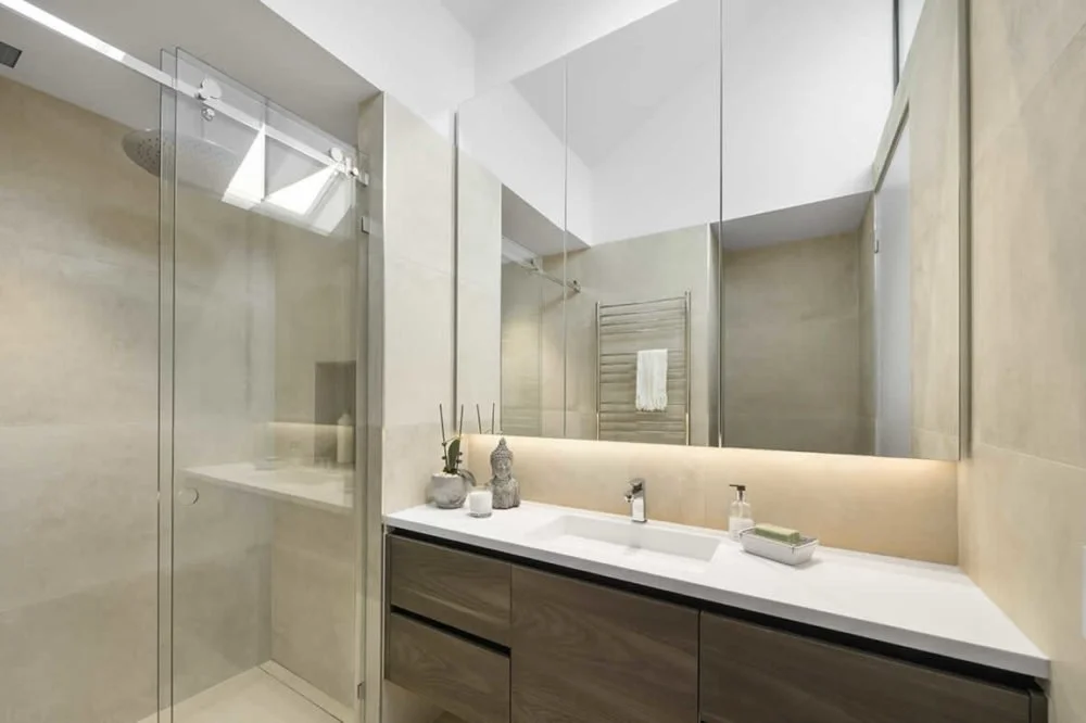 The gourmet kitchen has Miele appliances, stone surfaces and a butler’s pantry. The property also includes a central staircase with a floor being an effective atrium, and a large master suite with luxurious ensuite that features a stunning free-standing stone bath.