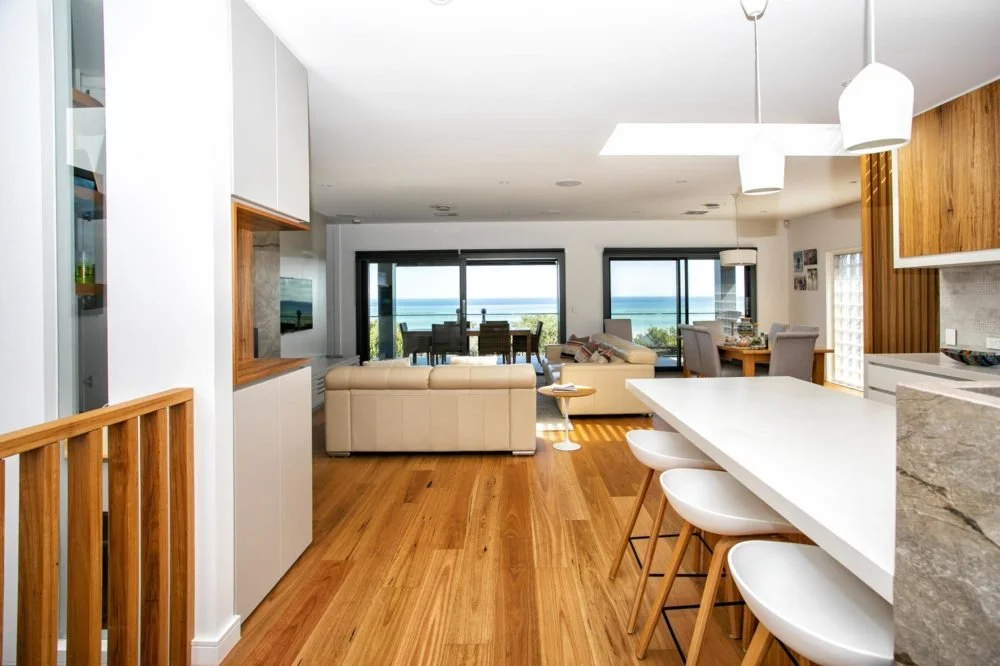 This magnificent beach front property was refurbished with a total reconfiguration undertaken. The result was a stunning transformation with open plan living to take in the spectacular views. The project Interior Designer is Patricia Toth from Design by T.